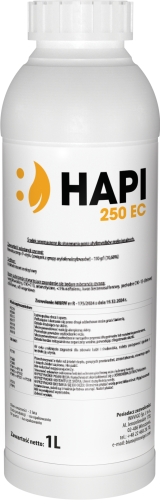 Hapi 250 EC to herbicyd selektywny w formie koncentratu do sporządzania emulsji wodnej (EC) o działaniu układowym stosowany nalistnie.
